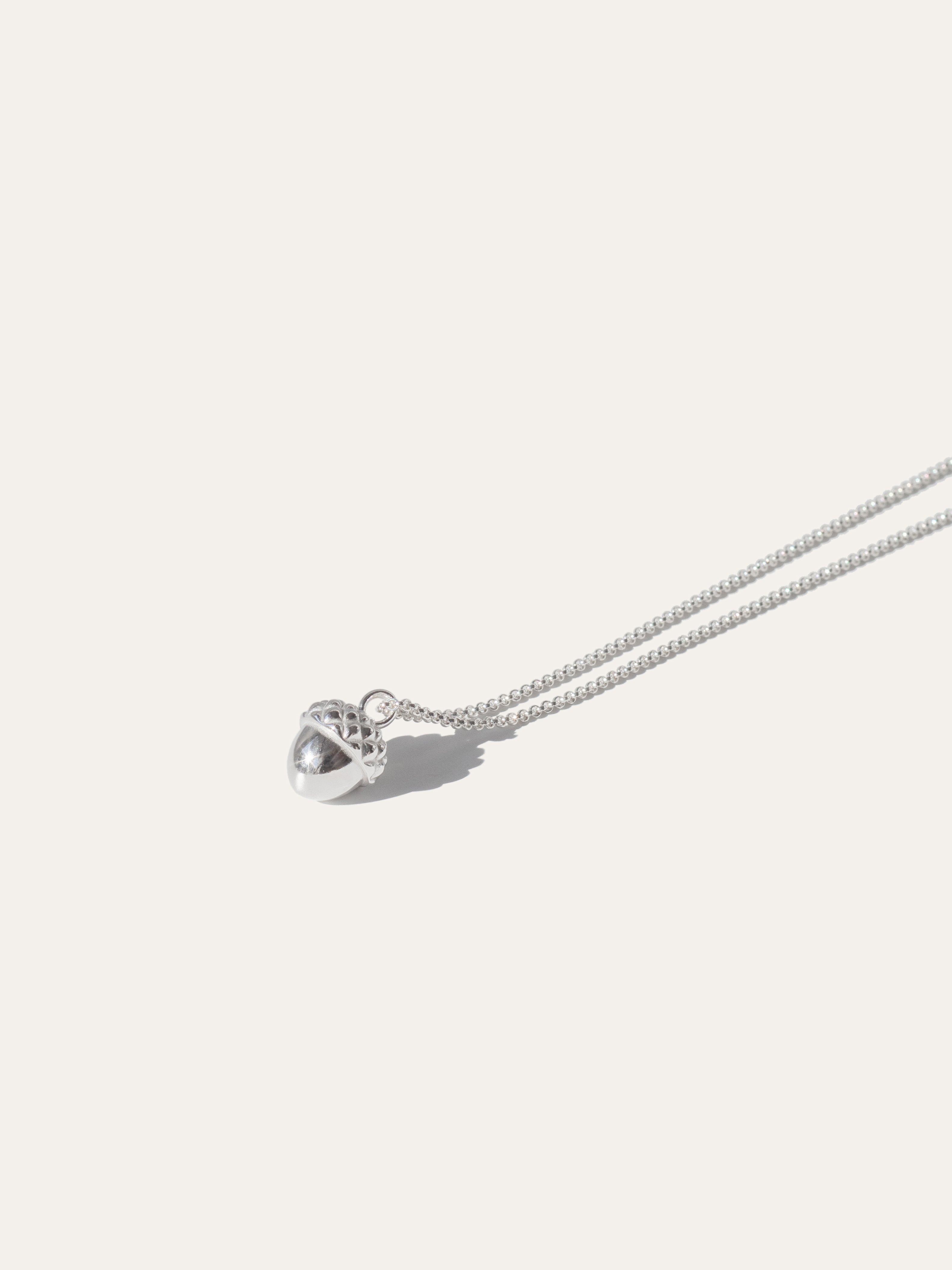 Large Acorn Charm Necklace made from sterling silver, featuring an elegant acorn pendant with intricate detailing.